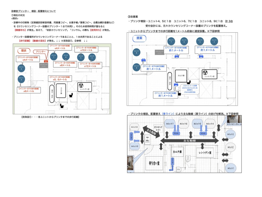 2級認定生さんの提出課題のご紹介です。3時間の受講で院内の動線改善提案+コストダウン想定が描けるようになります。